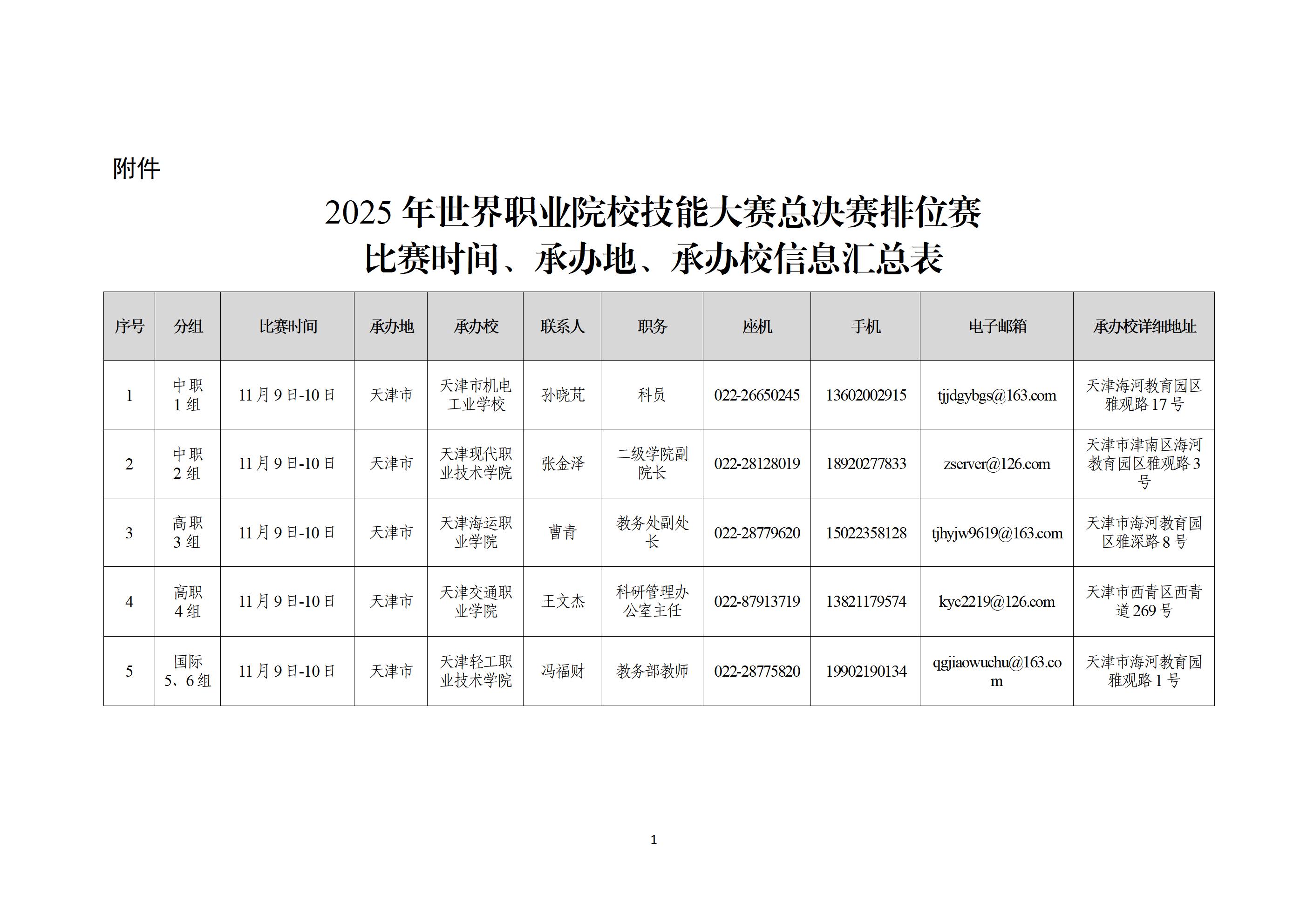 附件:2025年世界职业院校技能大赛总决赛排位赛比赛时间、承办地、承办校信息汇总表