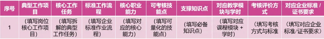1. 拆解核心职业能力:针对每一个典型工作任务,校企联合拆解出完成该任务必须具备的核心职业能力,包括专业能力、方法能力、社会能力。