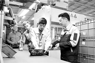 ①学生在吉利汽车生产一线感悟“三电系统”。